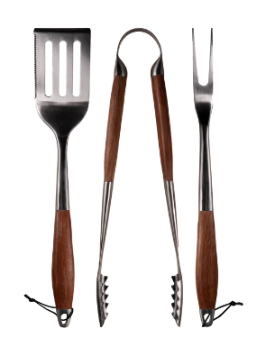 The Drip EZ® Grill Tool Set is the perfect lineup of tools to help you grill like a pro! Designed with utility and durability in mind, the three piece set includes spatula, tongs, and grilling fork.